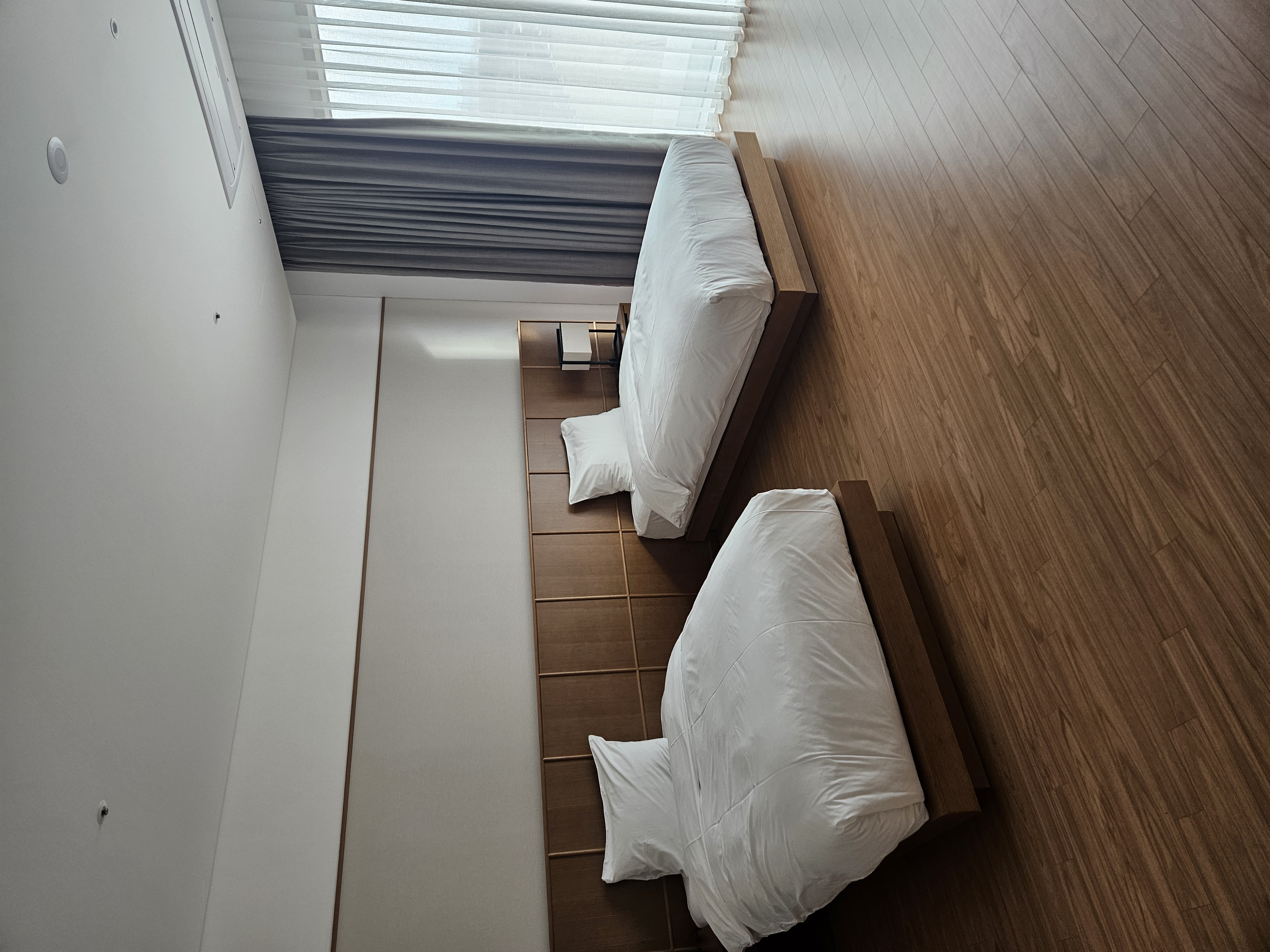 방 1개씩 슈퍼싱글 침대 2개씩 트윈으로 있어요 깔끔하고 모던하죠?ㅎㅎ 진짜 채광도 좋아서 태안여행 숙소로 정말 추천해요