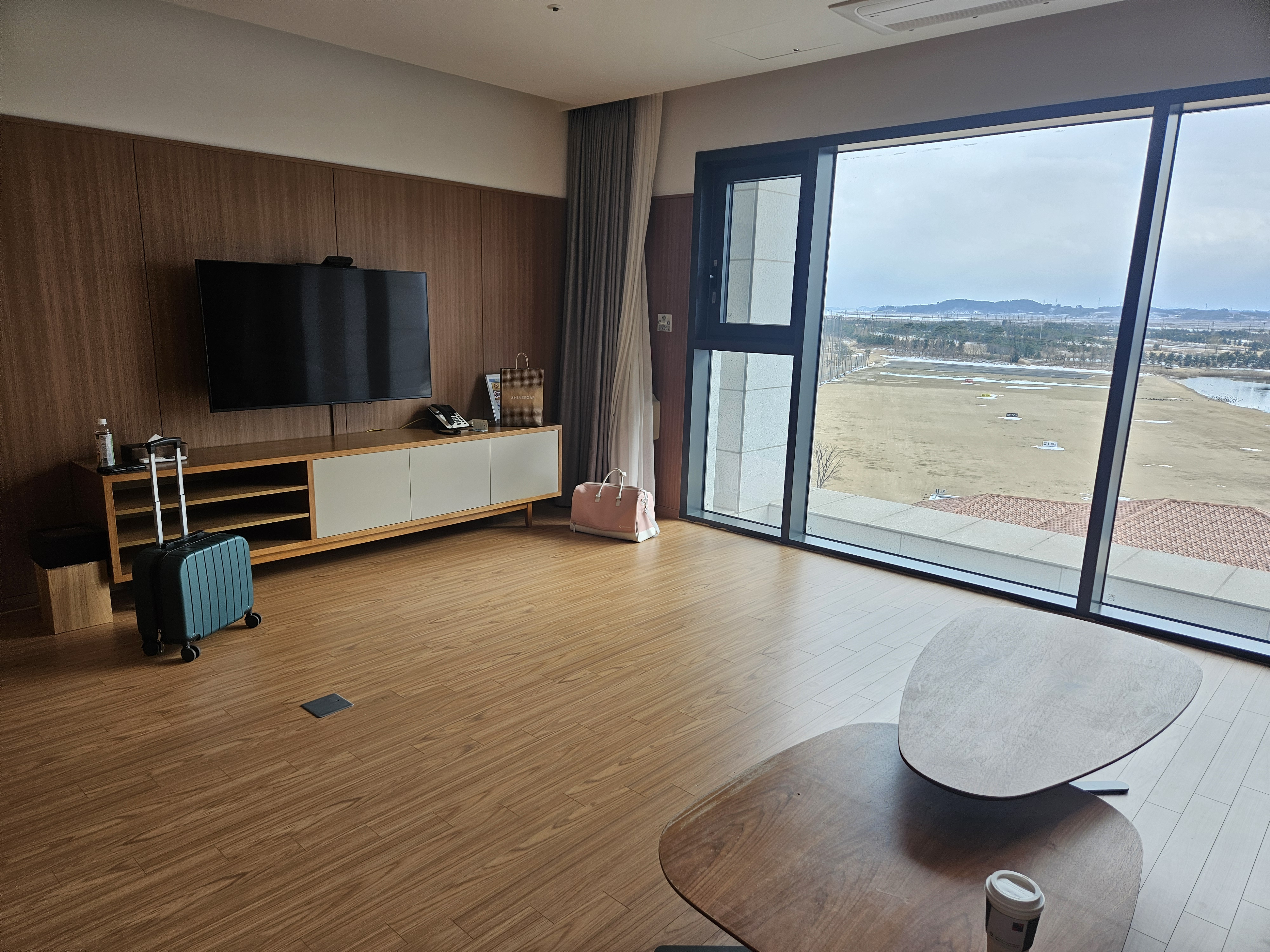 파노라마 스위트룸뷰는 골프장 쪽 뷰라 어찌나 예쁘던지 저희 태안여행 갔을 때 눈이 왔는데 소파에 앉아